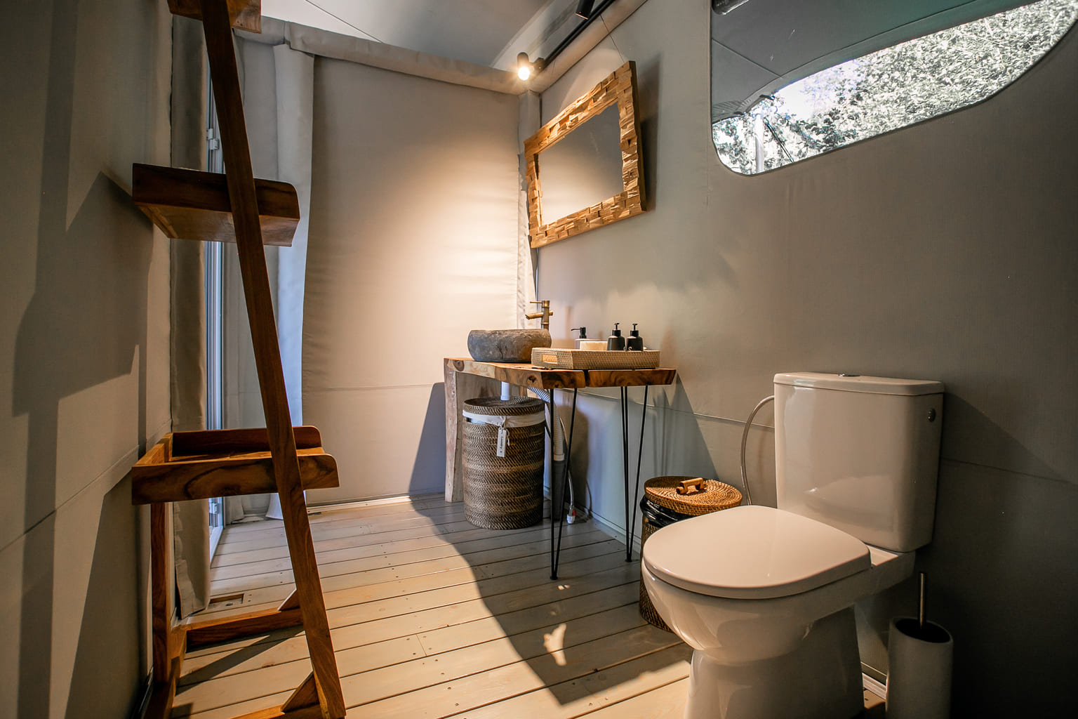Our collections focus on bohemian, natural, and safari-inspired styles that complement glamping environments. We can also source or create custom pieces to match your specific design vision.