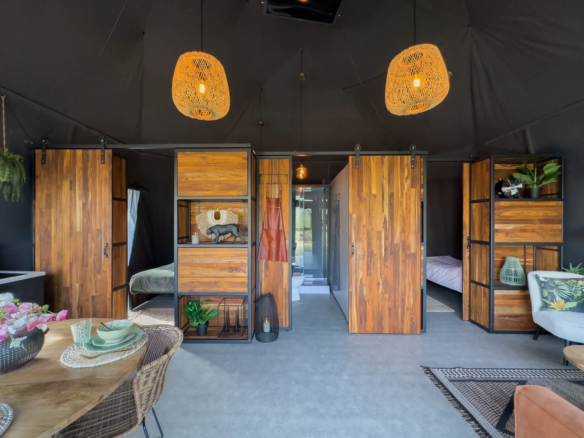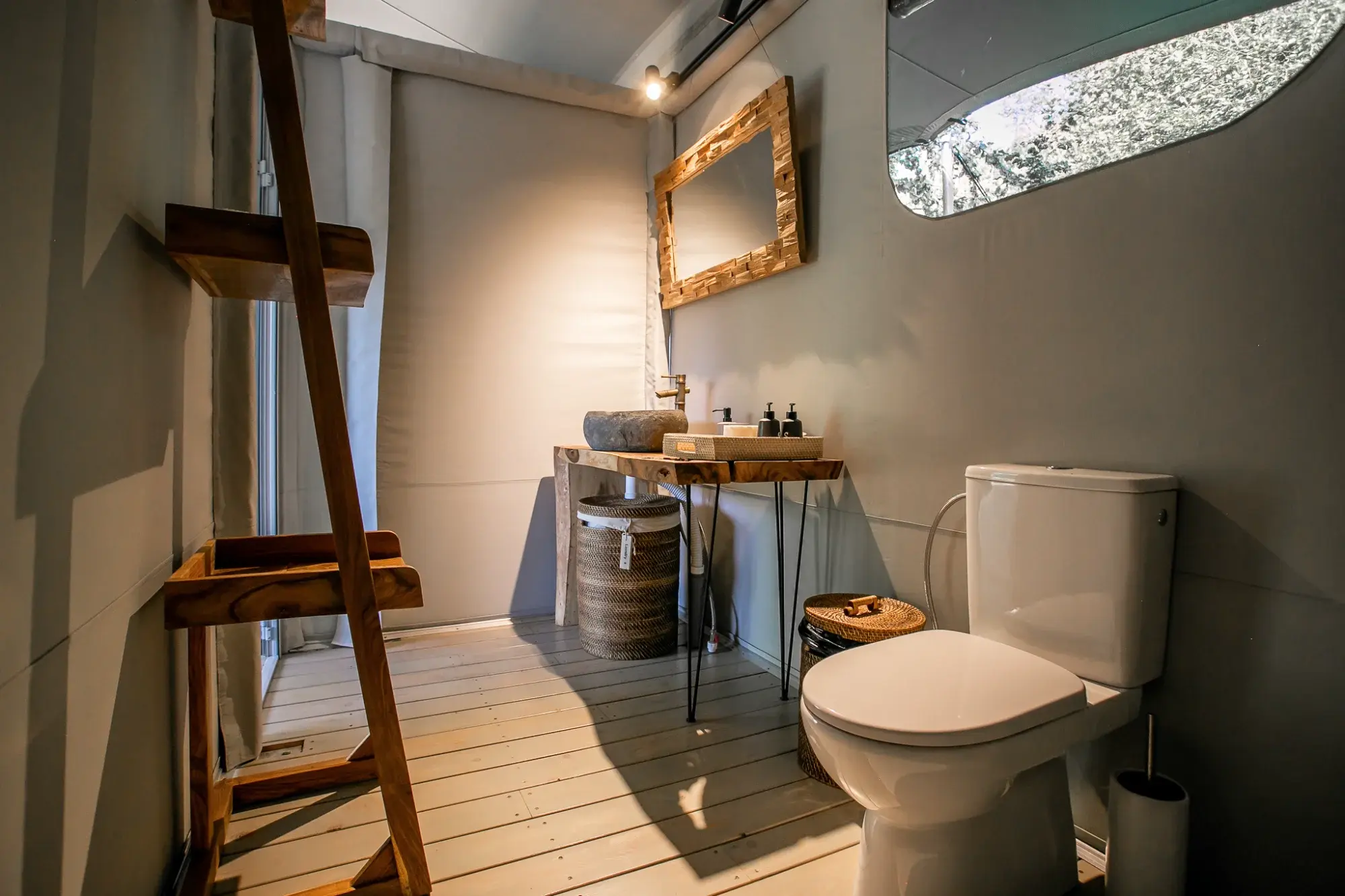 All our glamping units can include full en-suite bathrooms with hot showers, flushing toilets, and vanity areas. We handle all plumbing connections and can work with various water and sewage systems.