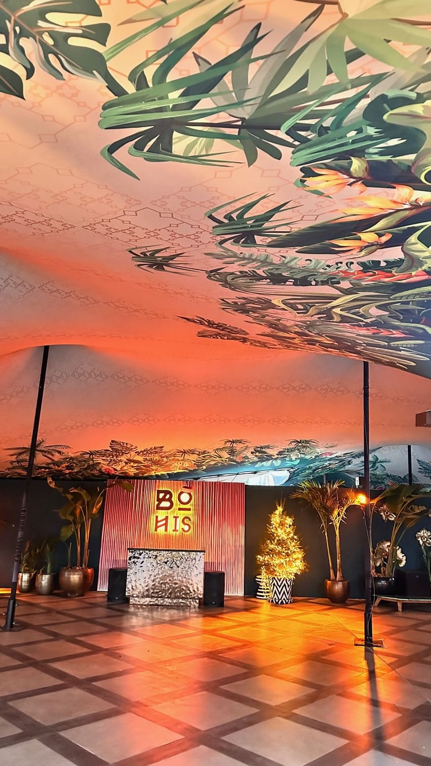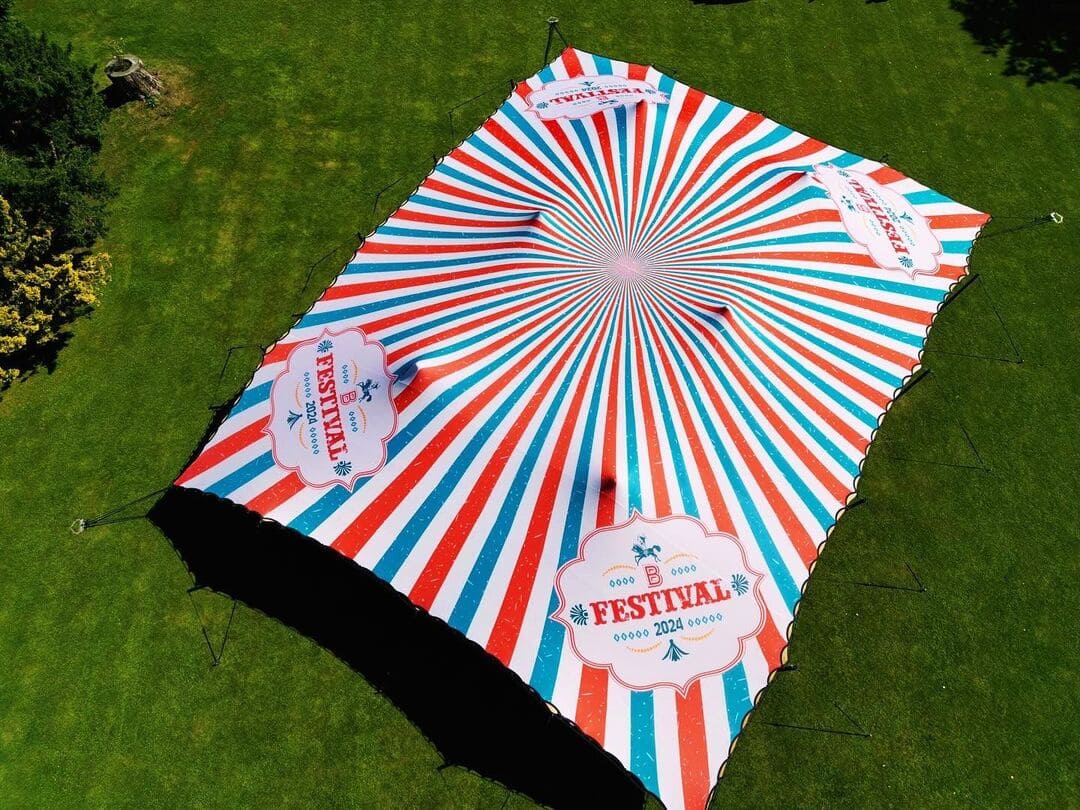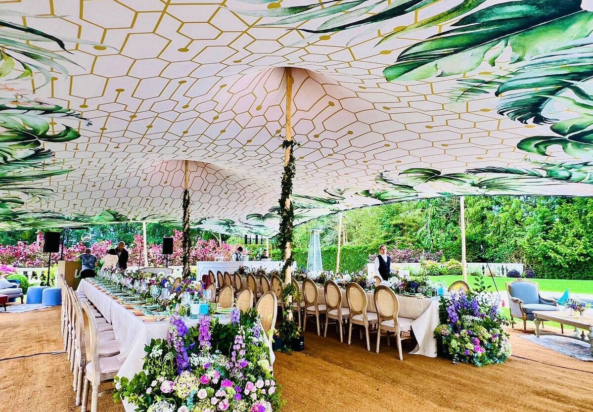 We design and deliver custom linings for stretch tents and marquees. If you have a specific theme or design in mind, we can create and print it for both the interior and exterior of your stretch tents or marquees.