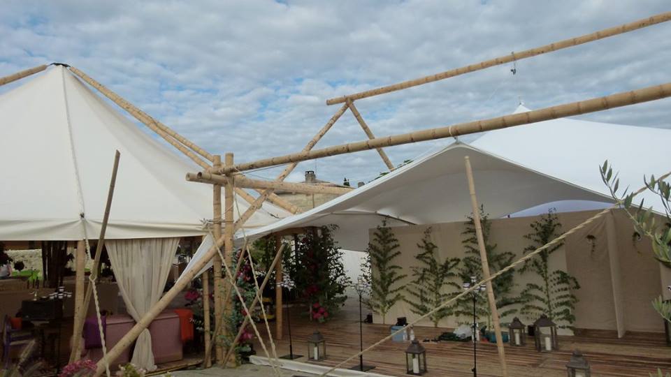 Classic square base bamboo marquees for all types of events. ERP CTS certified structures from 3x3m to 30x30m.