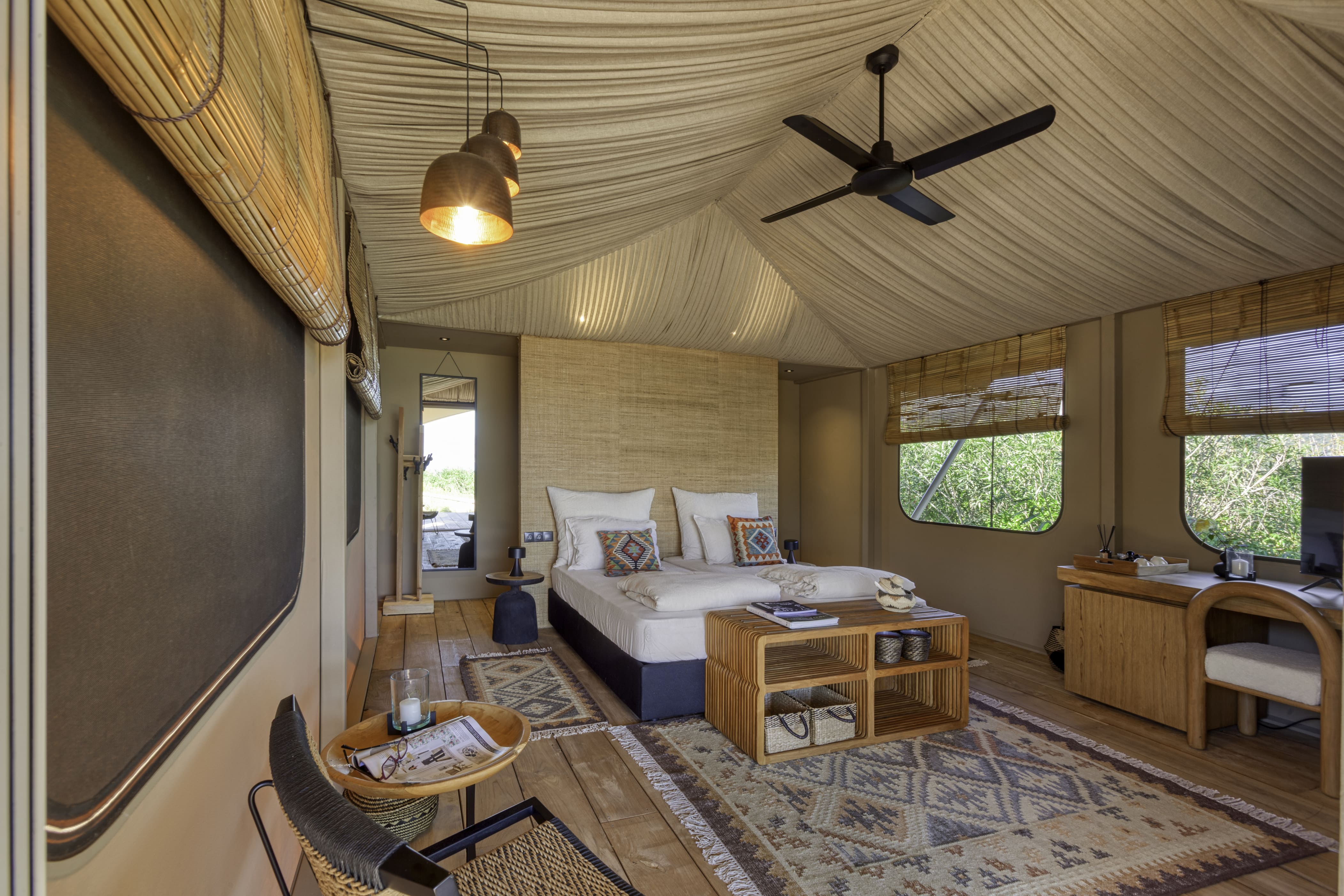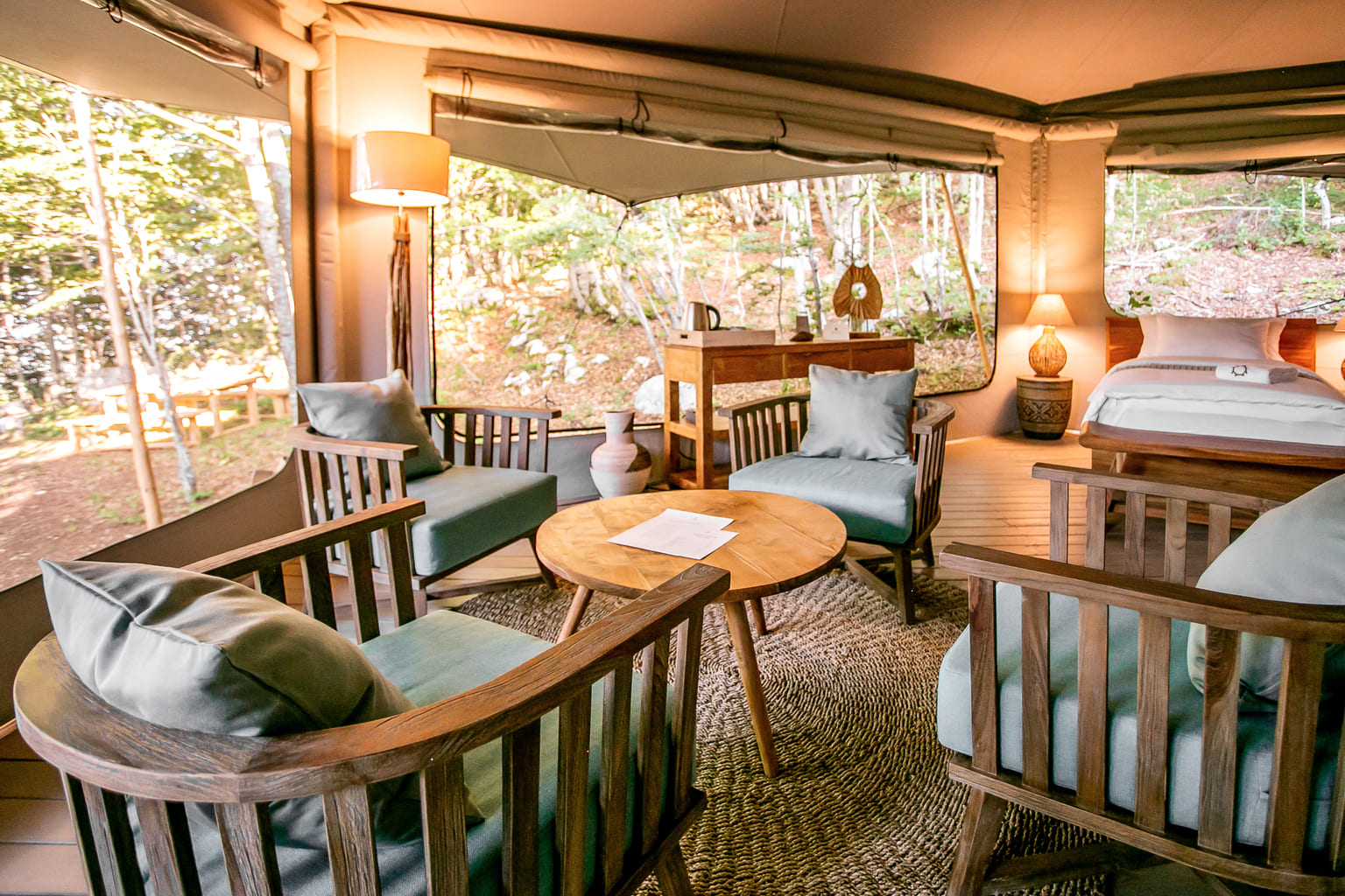 Complete interior furnishing for safari tents, bell tents, and luxury lodges.