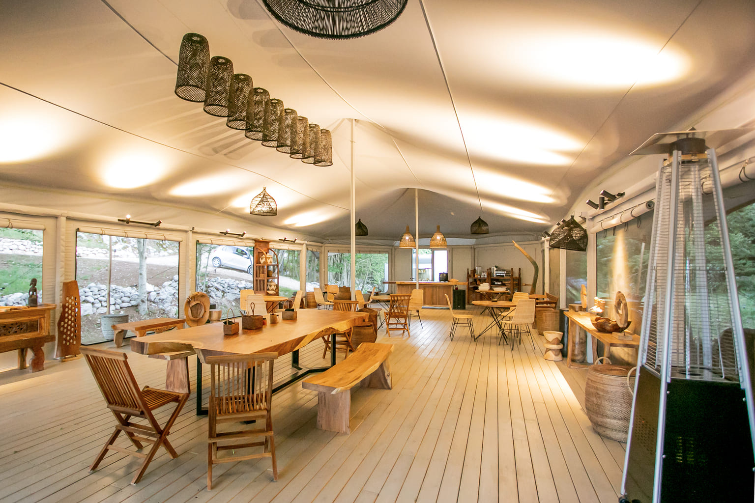 Our collections focus on bohemian, natural, and safari-inspired styles that complement glamping environments. We can also source or create custom pieces to match your specific design vision.